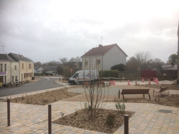 Après des premiers chantiers préparatoires en 2018, les premiers travaux d’aménagement de la phase 1, de la rue de la Mairie, de la rue Paul Tessier, de la place de l’Église et du carrefour de la route d’Angers, ont été effectués en cette année 2019.