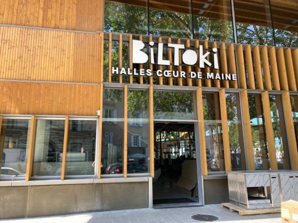 Un groupement, conduit par le groupe Biltoki, y développe un concept innovant baptisé « Halles Coeur de Maine », alliant une offre de commerce de bouche de qualité et une offre de restauration permettant de consommer sur place les produits achetés sur les stands. Les halles visent à valoriser les productions et savoir-faire locaux, en s’appuyant fortement sur les acteurs locaux, dont les trois chambres consulaires.