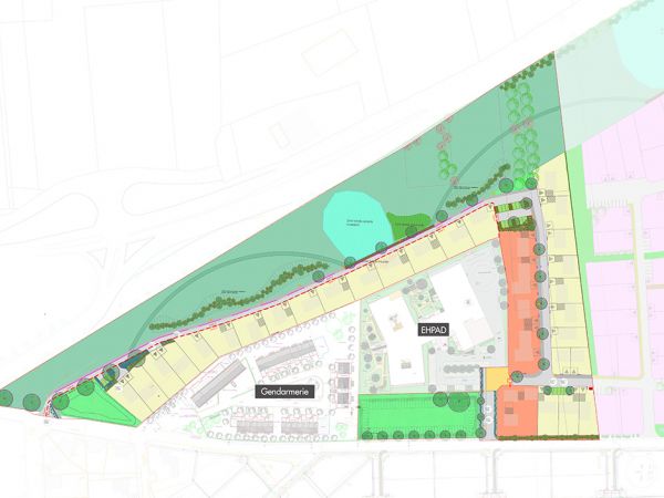 Ce nouveau quartier, qui a vocation à asseoir la relance démographique de la Ville, s’inscrit en cohérence avec le SCOT et le PLUi. Le programme de constructions et le parti d’aménagement ont été élaborés afin de prendre en compte la sensibilité écologique du site, ainsi que l’insertion urbaine dans le grand paysage. Une frange paysagère sera aménagée afin d’isoler visuellement et phoniquement le futur quartier de la route départementale. Des perméabilités permettront de préserver des perspectives vers le Châteaux et le centre-ville historique. L’aménagement paysager sera propice à la reconstitution des habitats faunistiques et la préservation de la flore.